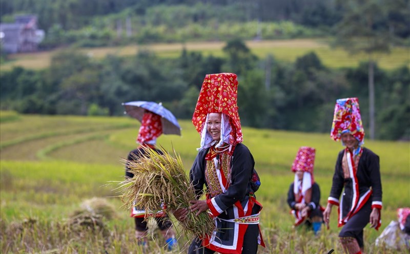 Visitors will admire the golden terraced fields, listen to the xoang melody, watch the traditional customs of the San Chi and Dao people; play women's football, watch Tac Xinh dance, eat trays, make sandals, decorate straw...