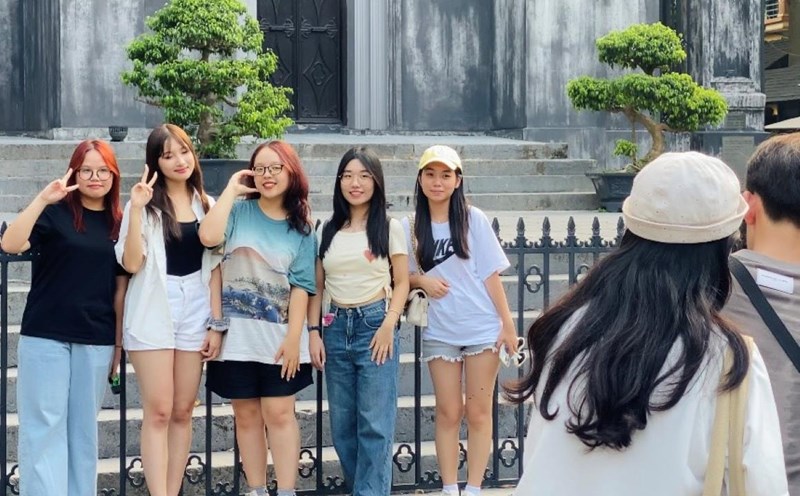 Even though it suddenly rained continuously, the atmosphere at the check-in point was always vibrant. Laughing and chatting were bustling, phones were constantly raised to record beautiful moments, creating an extremely vibrant scene.