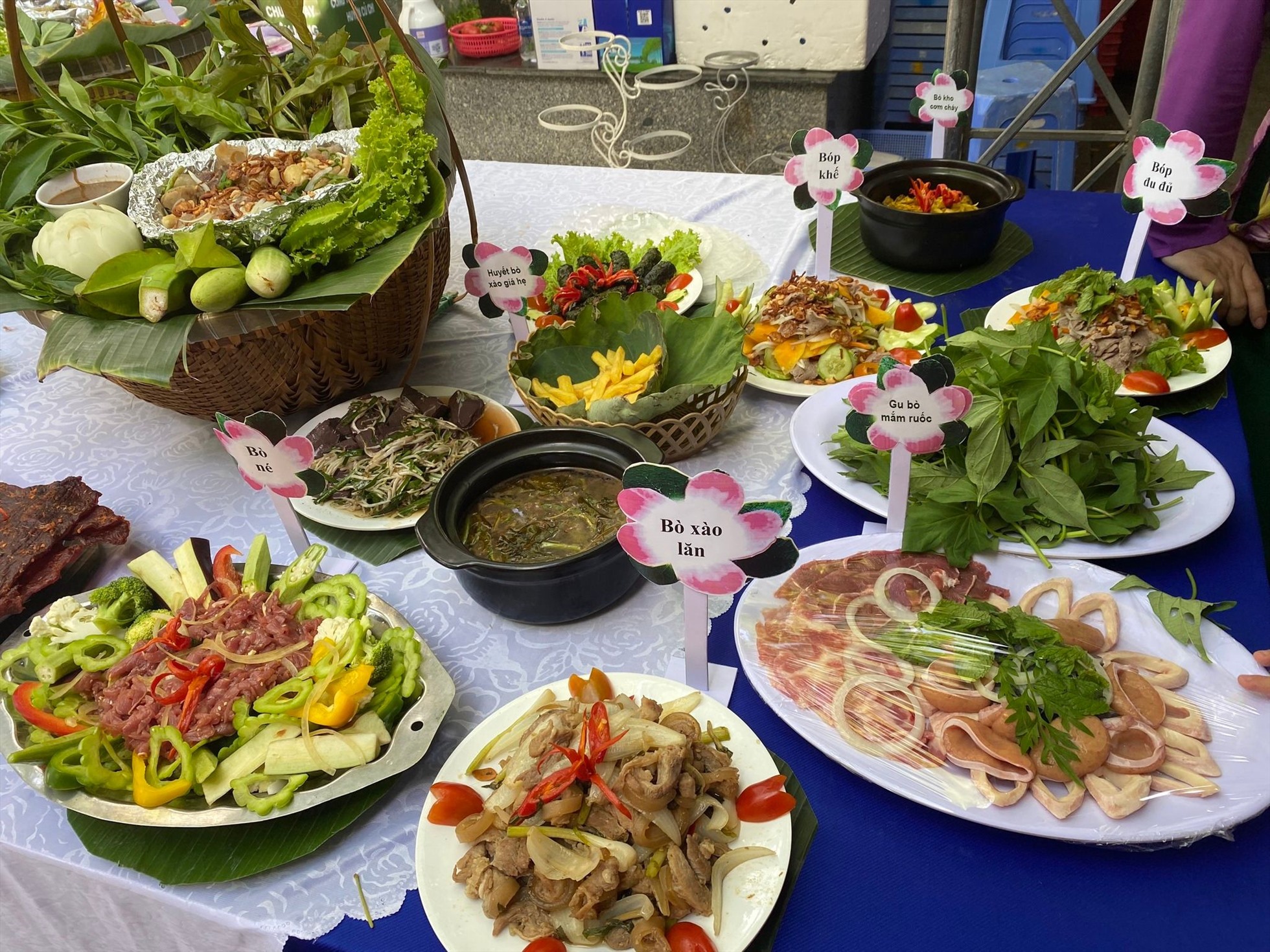 21 gian hàng của 21 xã, thị trấn trên địa bàn huyện tổ chức gánh hàng rong giới thiệu các ẩm thực của địa phương. Hàng trăm đặc sản Củ Chi đã được giới thiệu đến khách tham quan ngày hội như khoai mì, thịt bò, rau móp, bánh tằm, bánh củ mì nướng… Một số quầy bán đồ ăn, thức uống đặc sản Củ Chi đặc biệt đông khách.