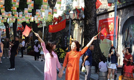 Celebrating the 70th anniversary of the Liberation of the Capital, a series of iconic buildings of Hanoi were recreated and restored such as: Tram, Dong Xuan Market, Hanoi Flag Tower, Opera House, Long Bien Bridge and 5 historic gates... attracting many young people to visit, take photos, check-in, and save memories.