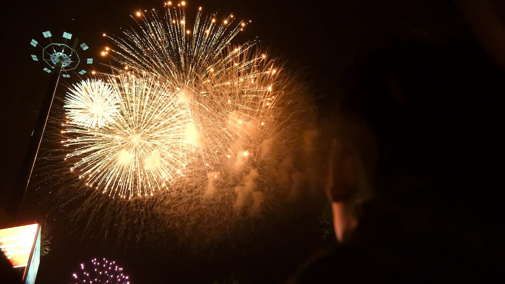 According to Lao Dong's records, right from 5 pm on January 23, a crowded flow of vehicles headed towards My Dinh area. Many people and tourists headed towards the roads around the stadium to wait for art fireworks displays and especially the 15-minute high-altitude fireworks display to end the program.