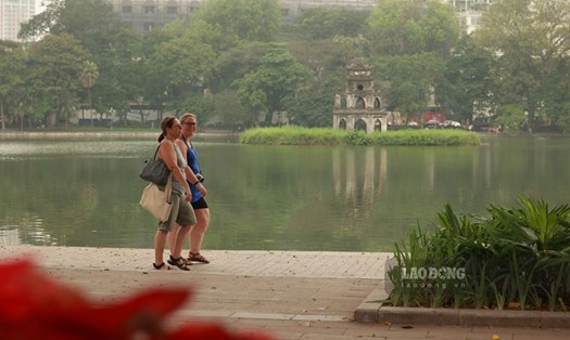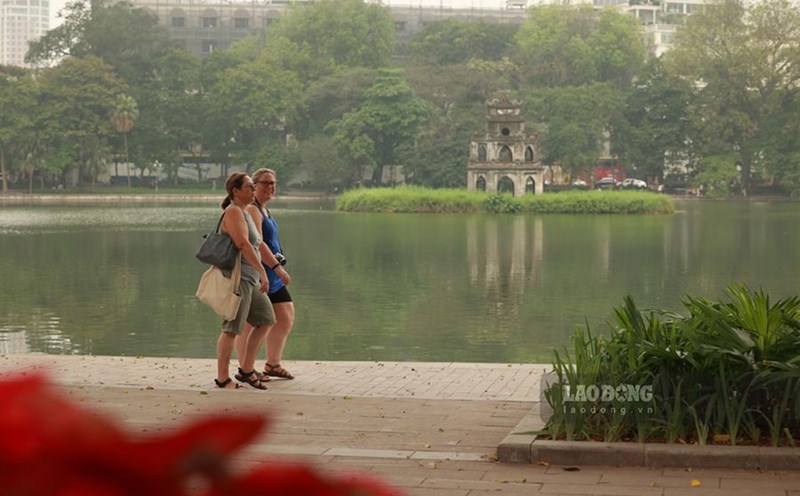 Hanoi - On April 30, a small cafe on Hang Ma street attracts many young people to check in the brilliant space of the national flag to celebrate the 50th anniversary of the reunification of the country.