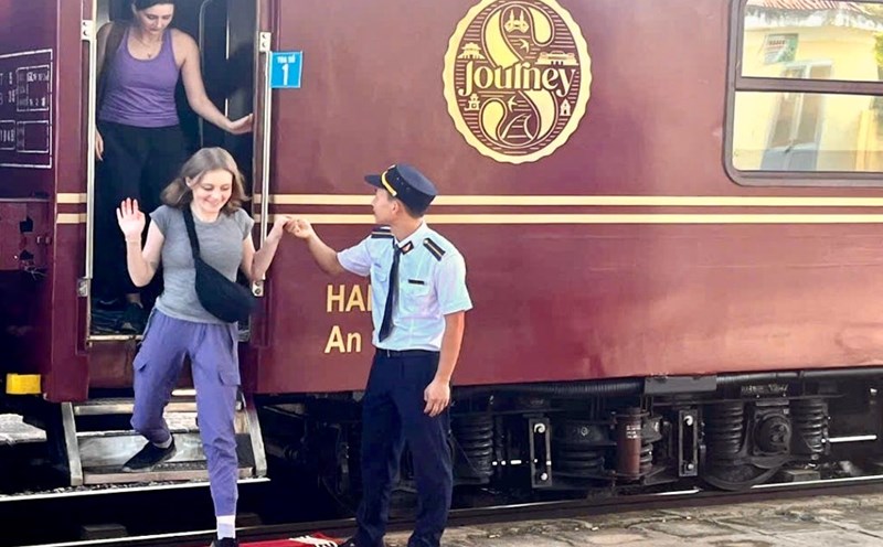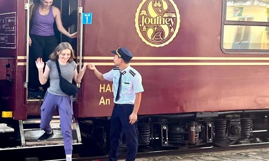 On December 23, the Quang Binh Tourism Promotion Information Center said that it had just welcomed a luxury tourist train departing from Ho Chi Minh City and passing through famous destinations such as Phan Thiet, Nha Trang, Hoi An, Hue, and stopping at Tho Loc station (Van Trach commune, Bo Trach district, Quang Binh province).