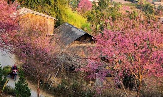 At this time, cherry blossoms are blooming in the Northwestern provinces, including many locations in Moc Chau, Son La province. Current local temperatures range from 13-25 degrees Celsius, cloudy, early morning with scattered fog and light fog, sunny in the afternoon. Light wind. Cold at night and morning.