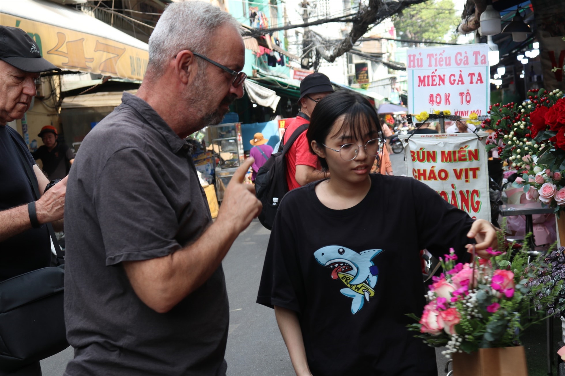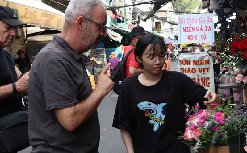 Ông Vĩnh Hà - đội trưởng Đội nghiệp vụ chợ Bến Thành cho biết: "Mỗi ngày, lượng khách ghé đến chợ Bến Thành tham quan, mua sắm khoảng hơn 1000 lượt/ngày, khách quốc tế chiếm khoảng 50-60%".