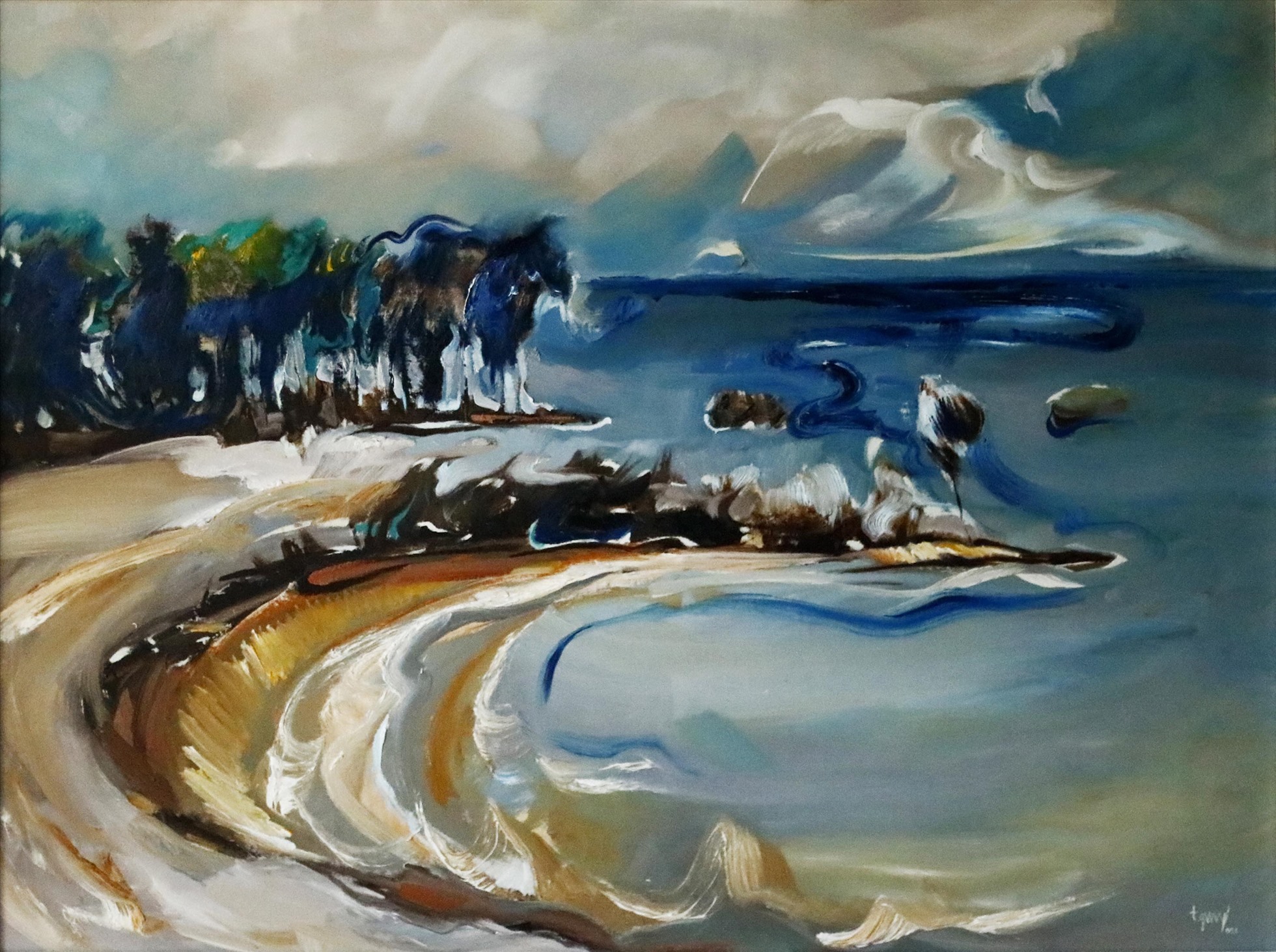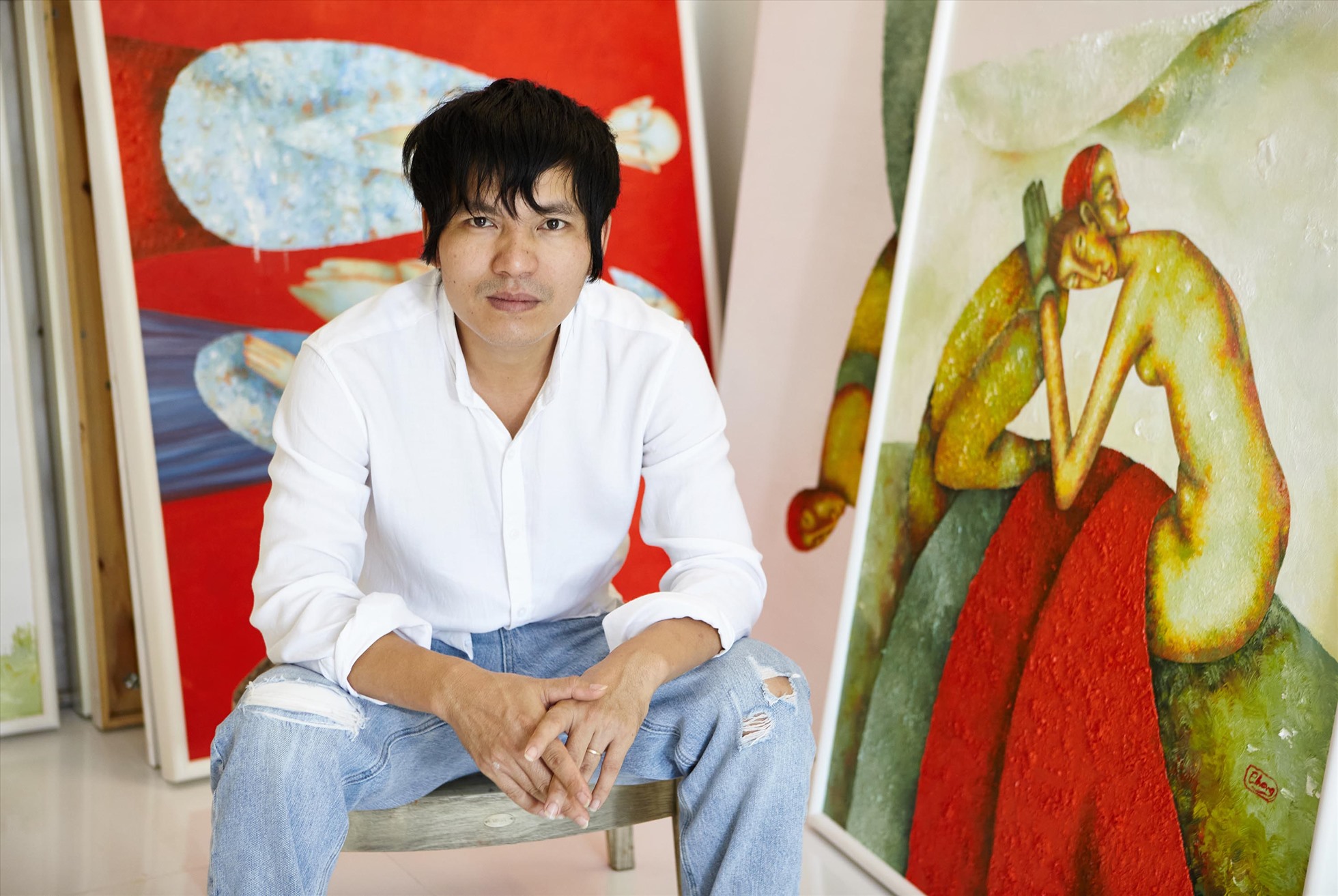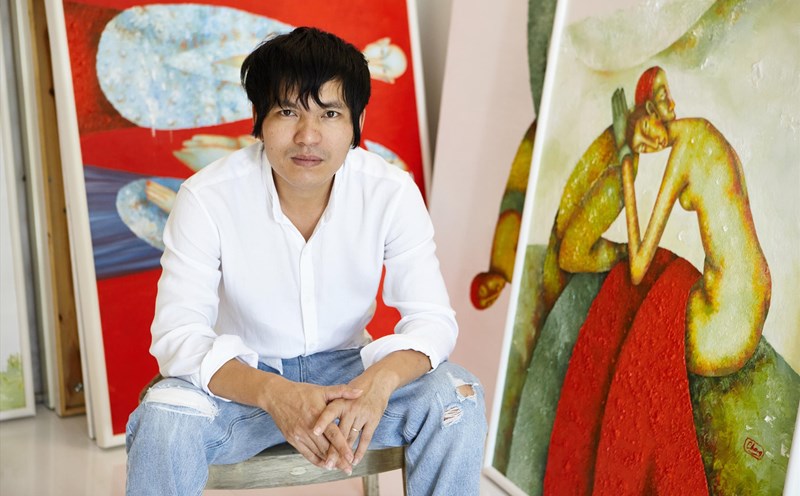 Họa sĩ Nguyễn Hải Nam bay bổng với chất liệu sơn mài truyền thống. Những cô gái trong tranh Nguyễn Hải Nam với họa tiết trên trang phục hòa lẫn cây cỏ, vũ điệu uyển chuyển… làm nên những đường nét mơ màng. Ước lệ của hình, mảng màu và nét làm ta như trong một giấc mơ của những ngày tháng xưa cũ, khi rêu phong, khi rực rỡ vàng son.