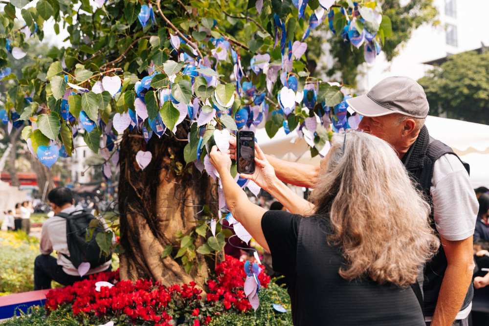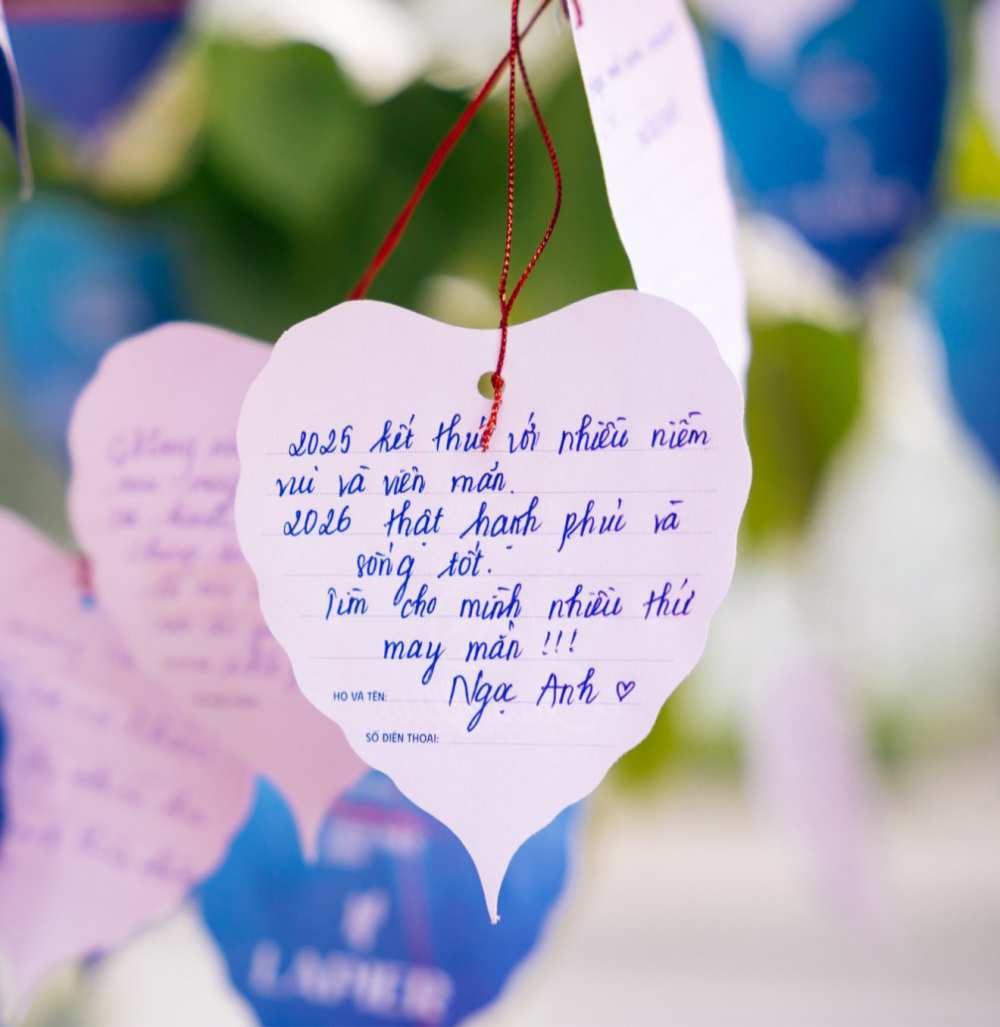 Each piece of wishes is hung on the tree like a small leaf, weaving together an emotional garden, where everyone finds a little peace, a little hope and a lot of happiness in everyday life. From there, happiness for each person is defined in its own way.