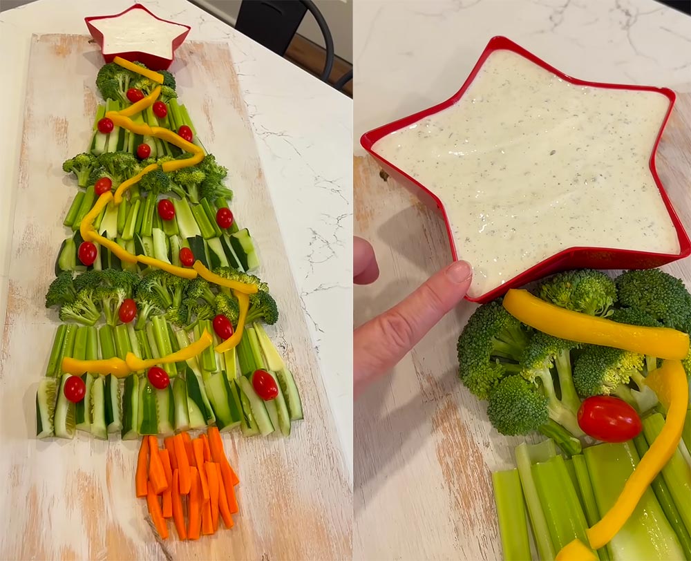 With simple construction, easy-to-find ingredients and eye-catching appearance, Christmas tree-shaped vegetable trays are a suitable suggestion for home Christmas parties or when you need to bring appetizers to year-end gatherings.