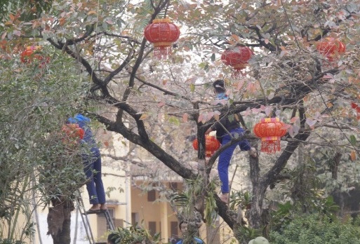Below, the teachers attentively observe and adjust so that the lanterns are hung in the right position. For many students, this is the first time they have prepared Tet themselves, in a disciplined environment but still leaving space for very ordinary emotions.