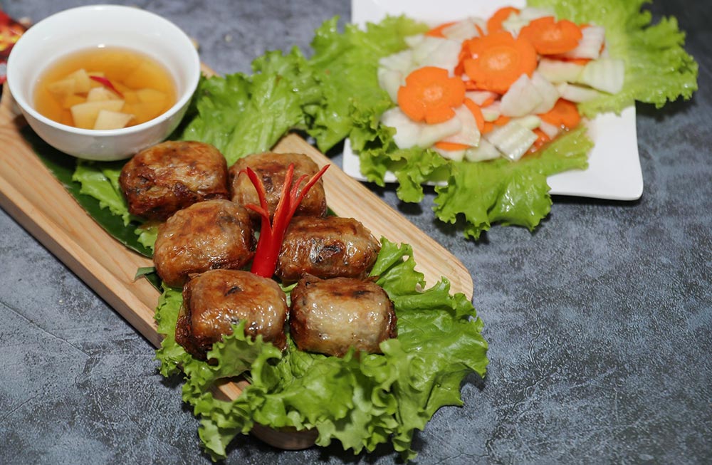 Besides, there are traditional dishes such as fried pork roll, roasted pigeon, and ball soup. Besides ball soup, many families also cook bamboo shoot soup.
