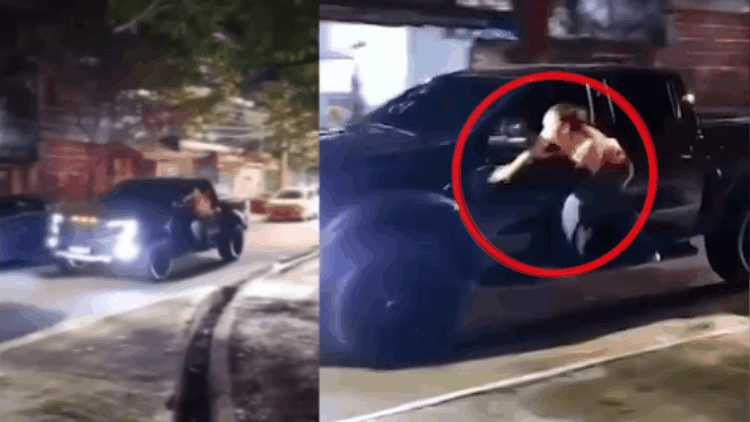 A woman has caused a stir after being filmed climbing onto a speeding pickup truck in Brazil after discovering her husband was having an affair.