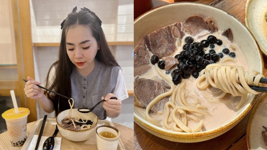 Beef pearl milk tea noodles receive mixed reviews from diners.