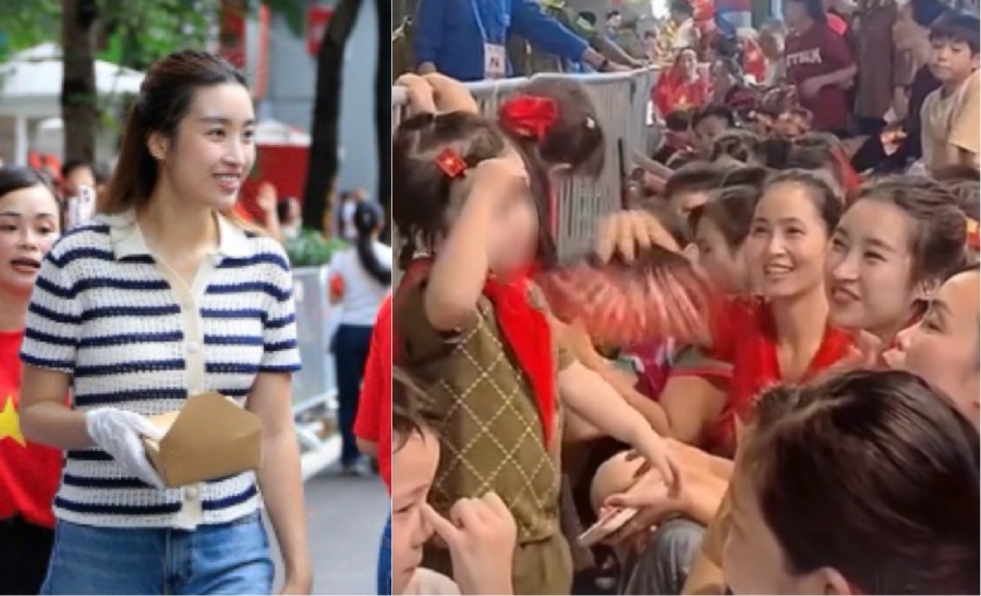 The moment Miss Do My Linh held a fence to watch the parade attracted attention