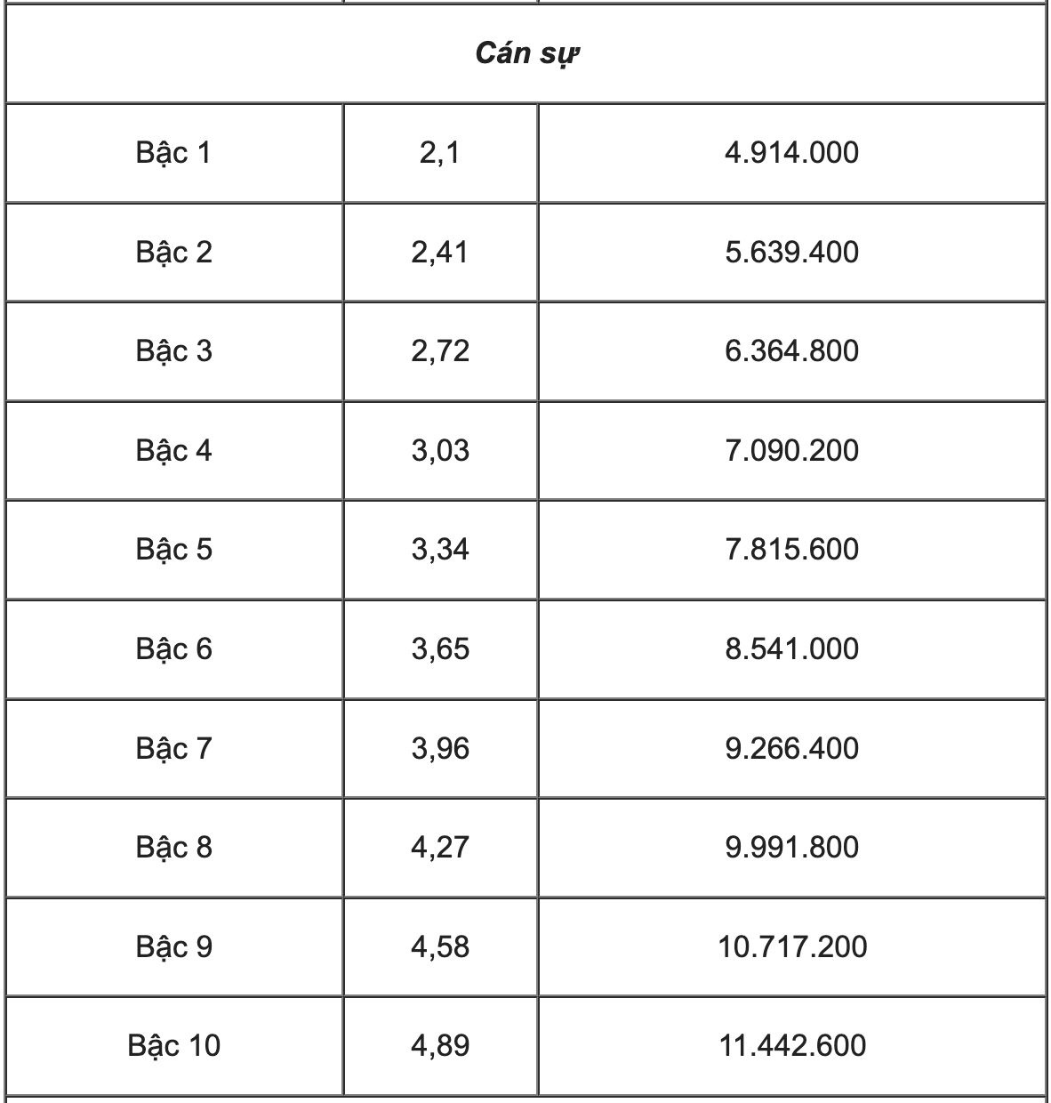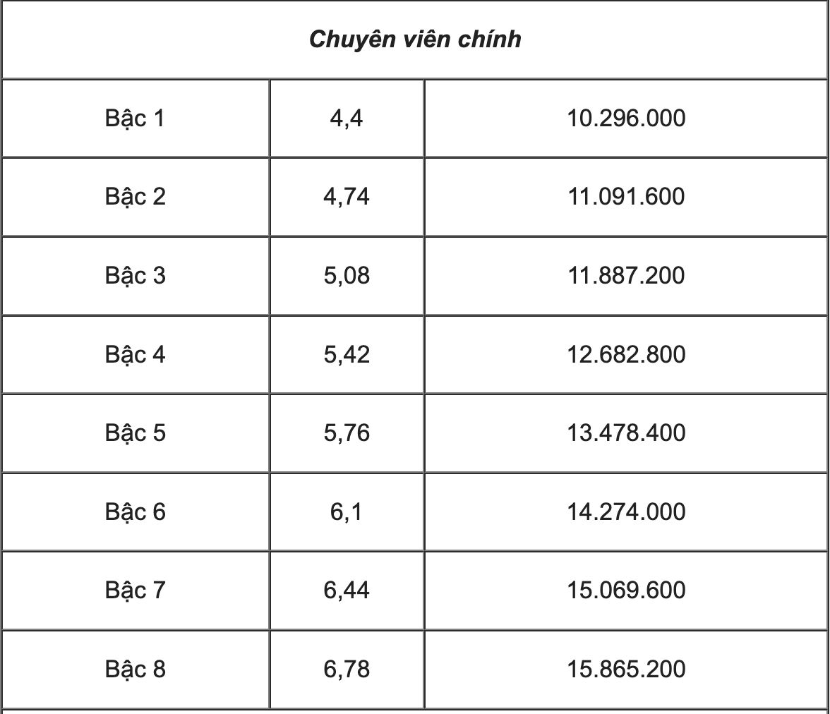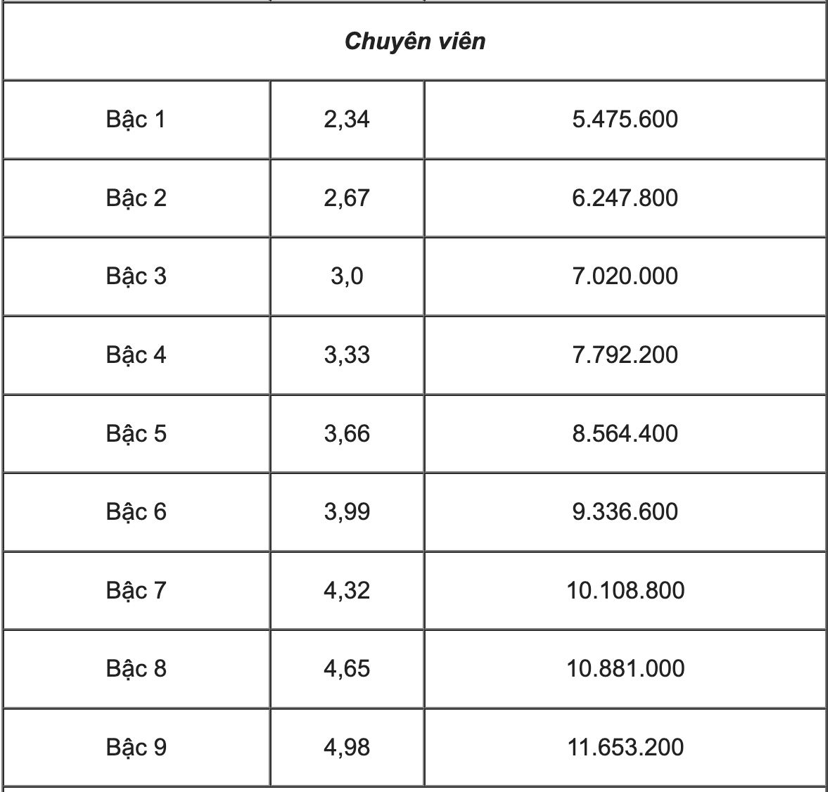 Pursuant to Article 14 of Circular 02/2021, the ranks of specialized administrative public servants shall be paid according to Table 2 - Professional and professional payroll with officials and public servants in state agencies issued together with Decree 204/ 2004 of the Government.