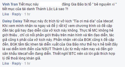 | Khán giả phát hiện tiết mục của Gia Bảo giống vở diễn của nghệ sĩ Thành Lộc. Ảnh: FBNV. |