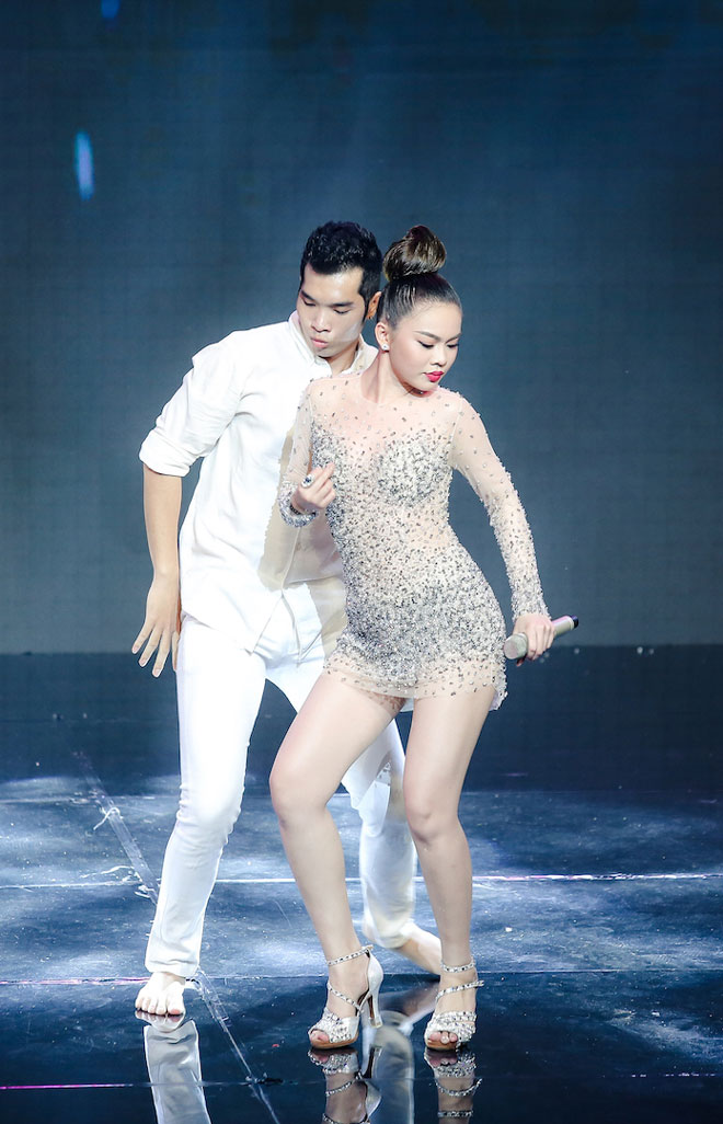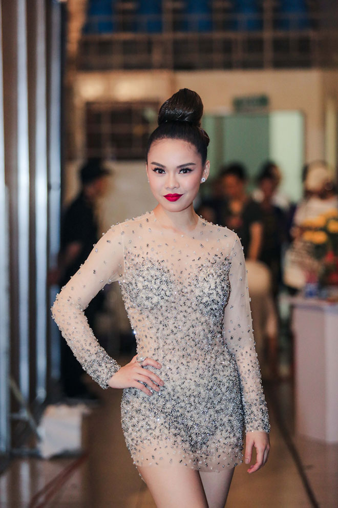 Giang Hồng Ngọc diện trang phục xuyên thấu đính đá tôn nét gợi cảm vốn có của mình. Ảnh: Thành Luân. |