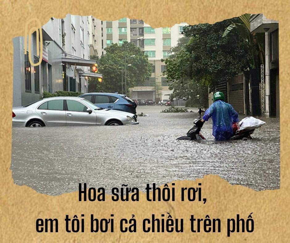 In recent days, this series of songs, from "Hanoi this season, the streets are like rivers" to "Flood from the street intersection" has been widely shared.