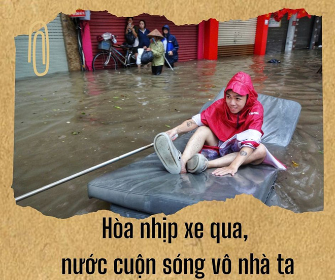 The lyrics in the 2009 Tao Quan song were sung by many people every rainy season: "In addition to the rain, my city is flooded, when people and vehicles are separated, they swim on the road", "Seeing the whole people racing to swim like a contest", "In the middle of the majestic capital/a flock of fish floating on the sidewalk/alling up to swim on the sidewalk, the water rolling into our house...".