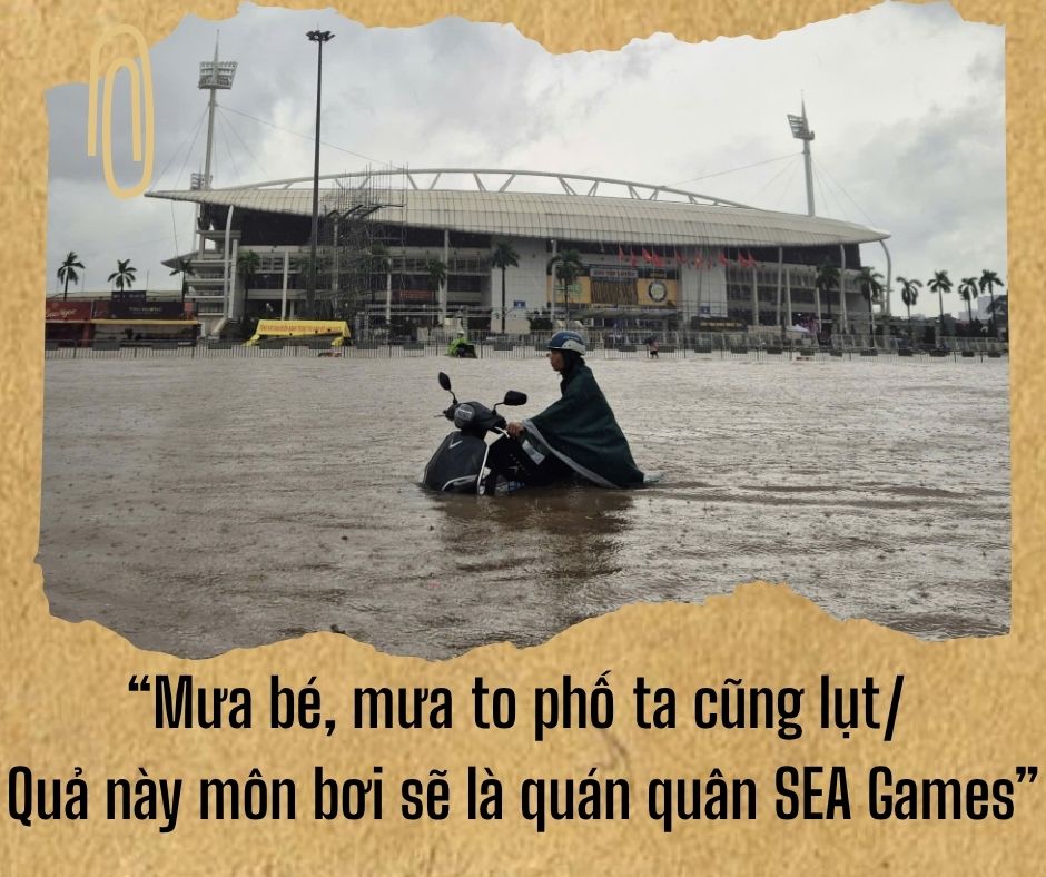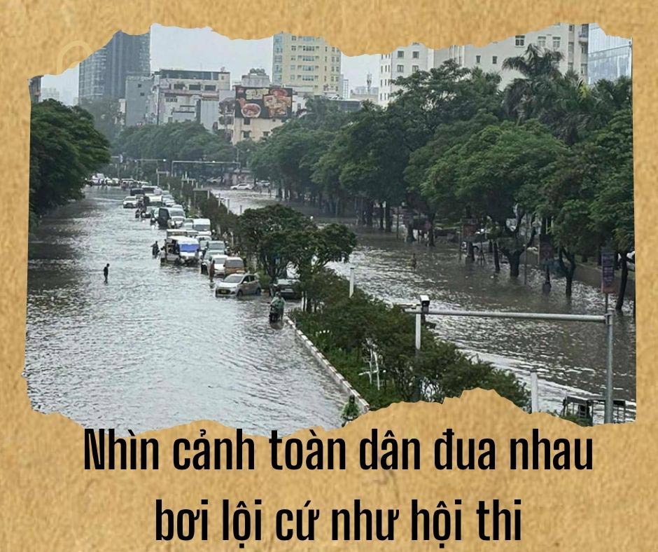 Every time Hanoi is heavily flooded, the familiar saying about "city swimming" begins. Little rain, big rain, our city is flooded/ This swimmer will be the champion of the SEA Games has become a song that predicts each rainy and stormy season.