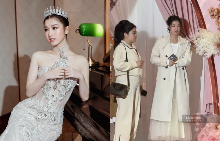 From early morning, the family of the Miss World Vietnam 2022 runner-up was busy preparing the final steps to welcome the groom's family. The ceremony bearers were also present early, wearing traditional pink ao dai, "ton sur ton" with the engagement theater.