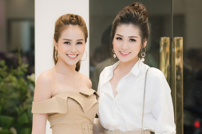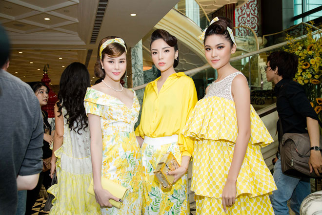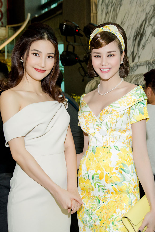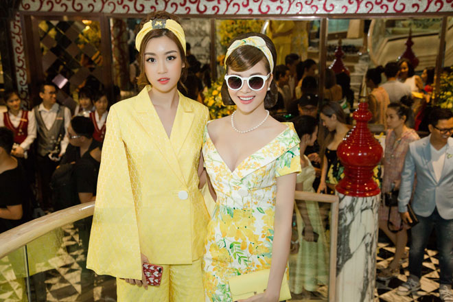 | Cùng tone vàng rực rỡ, Hoa hậu Mỹ Linh trẻ trung chụp hình kỷ niệm cùng Sella Trương. |