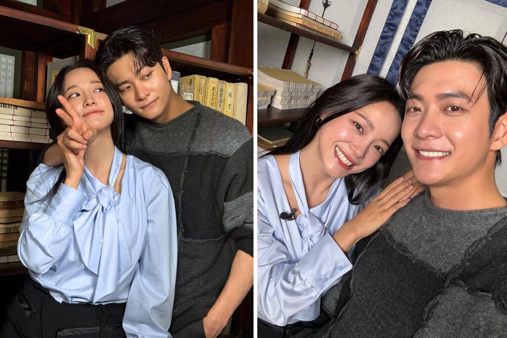 These photos were taken on set for the drama "Moon River" in which the two actors starred.