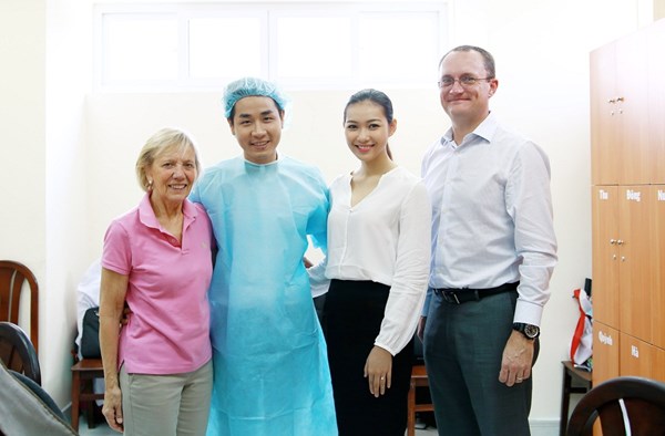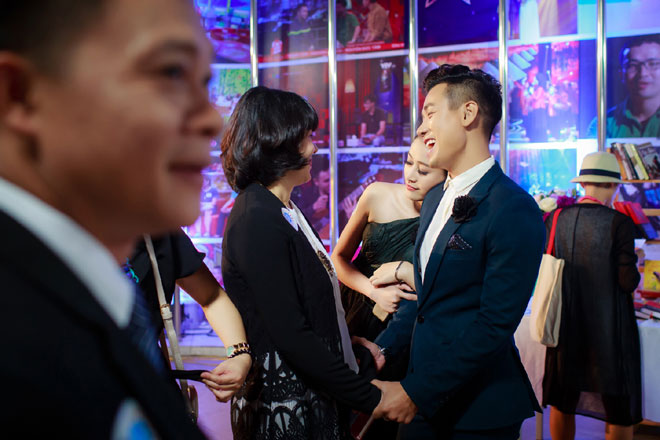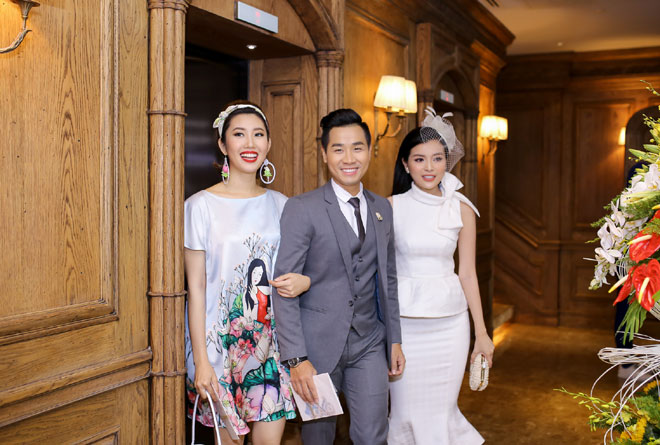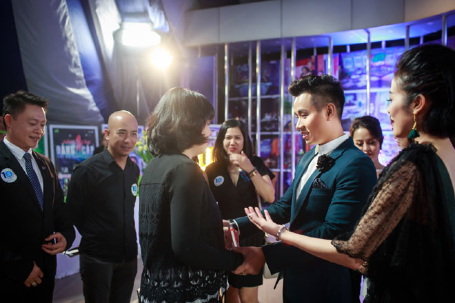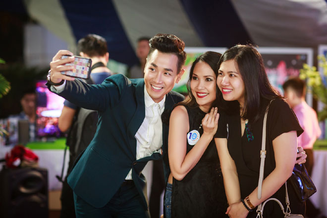 | MC Nguyên Khang vui vẻ chụp hình kỷ niệm cùng đàn chị. |