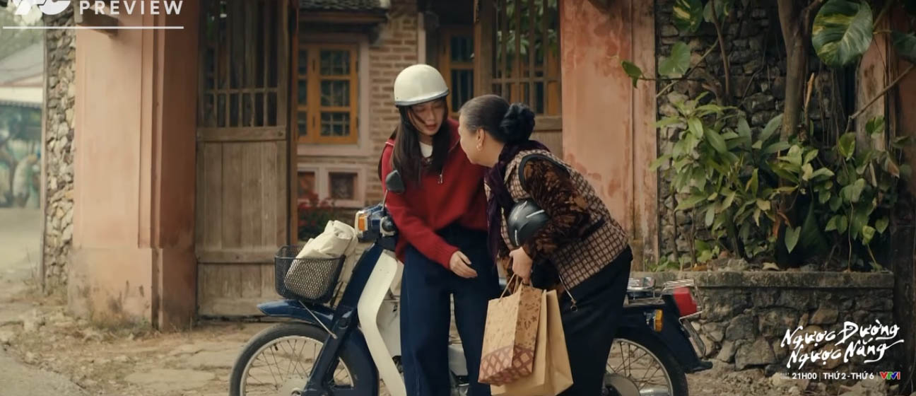 On Mai's side (Ngoc Huyen), she spent time taking Ms. Chinh (Meritorious Artist Thanh Quy) shopping. When she returned, Ms. Chinh invited Mai into the house to play, but Mai had to refuse. Seeing this, Ms. Chinh pretended to have a sore leg so she could help her into the house. "Is it fun to go in with you, waiting for Trung to come back, every time I'm in a hurry," Ms. Chinh happily said. Hearing Ms. Chinh mention Trung, Mai happily revealed that she had a coffee date with Trung. This made Ms. Chinh overjoyed.