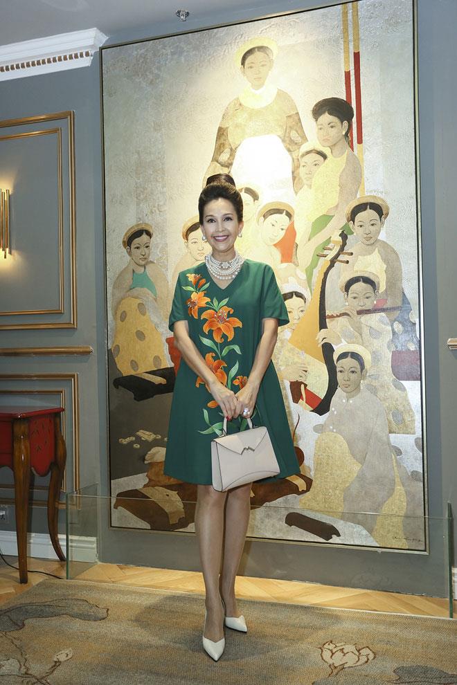 Kết hợp cùng trang phục là phụ kiện ngọc trai của thương hiệu cao cấp mà Diễm My đặc biệt yêu thích.