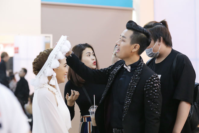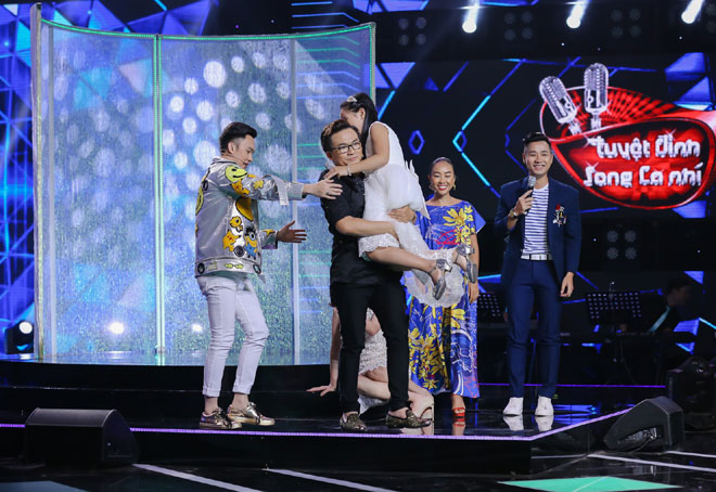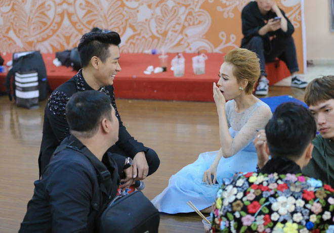 | Nguyên Khang trò chuyện thân mật với Phương Mai giúp cô tự tin khi thể hiện thật tốt phần trình diễn của mình. |