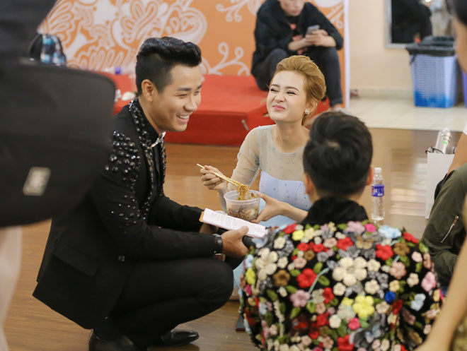 | Nguyên Khang được đánh giá là một đàn anh giản dị, quan tâm đến các thí sinh của 'The Voice" khi không ngại hỏi han, khuyến khích dùng đúng bữa của Hiền Hồ trước khi bước ra sân khấu. |