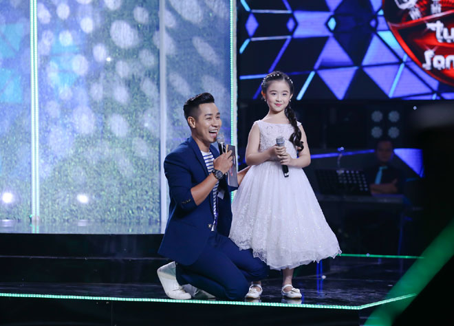 | Cặp chú cháu Nguyên Khang - Bảo Ngọc lần đầu kết hợp với nhau trong vai trò MC của "Tuyệt đỉnh song ca nhí". Bảo Ngọc là gương mặt được khán giả yêu quý không chỉ bởi ngoại hình xinh đẹp, mà còn ở khả năng ca hát nhất là dòng nhạc dân ca. Cô bé từng là Á quân của "Gương mặt thân quen nhí". |