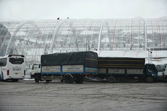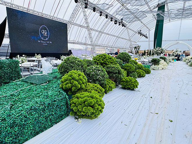 The wedding space is decorated with many fresh flowers and a large LED screen. It is known that the groom's family started construction of the wedding tent a week ago. All preparations are planned in detail and meticulously.