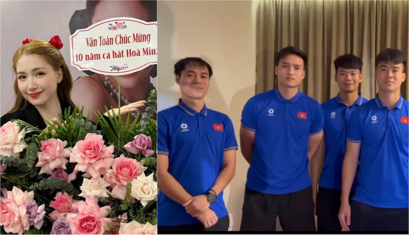 Van Toan and the Vietnamese players filmed a video congratulating Hoa Minzy