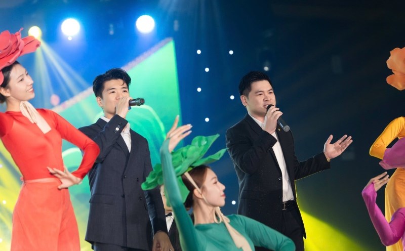 Businessman Do Vinh Quang - husband of Miss Do My Linh and brother Do Quang Vinh sang the duet "Ba tell con nghe" on Mr. Hien's birthday.