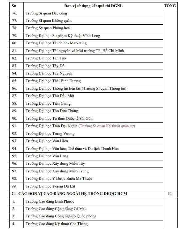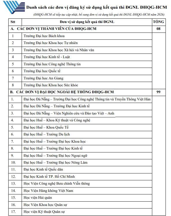 According to the announcement of Vietnam National University Ho Chi Minh City, there are currently 118 universities and colleges nationwide using the results of the 2026 competency assessment exam for enrollment.
