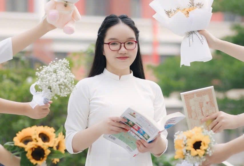 Hua Quynh Bao, class 9A8, Cau Giay Secondary School, Hanoi, is the valedictorian of the English Department of Hanoi - Amsterdam High School for the Gifted and Hanoi National University of Education High School for the Gifted.