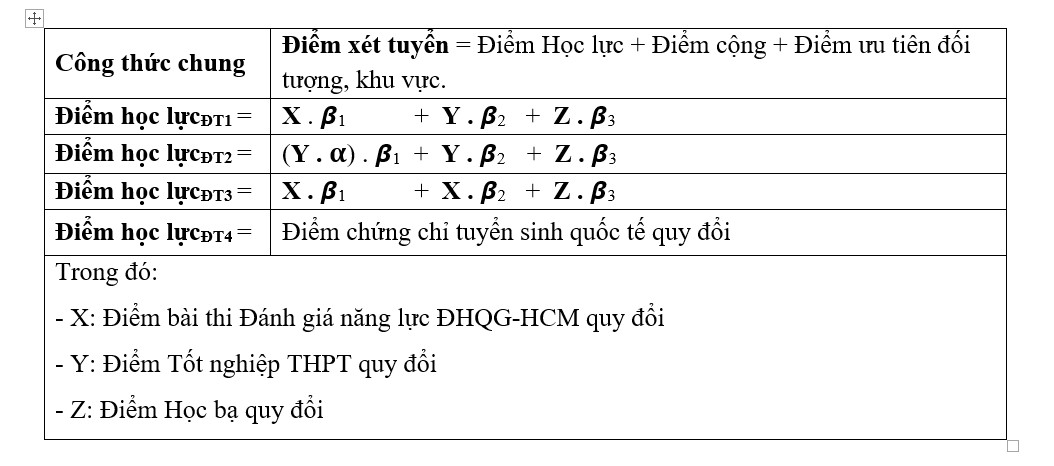 Currently, some schools in the Ho Chi Minh City National University group have announced the score calculation formula.