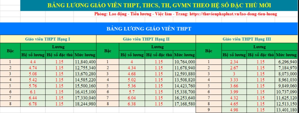 Formula for calculating teachers' salaries = Basic salary x Current salary coefficient x Special salary coefficient.