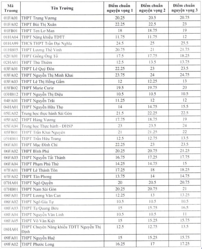 In 2025, the highest benchmark score in Ho Chi Minh City reached 24.5 points, equivalent to an average of more than 8 points per subject. This is the highest level among the three regions.