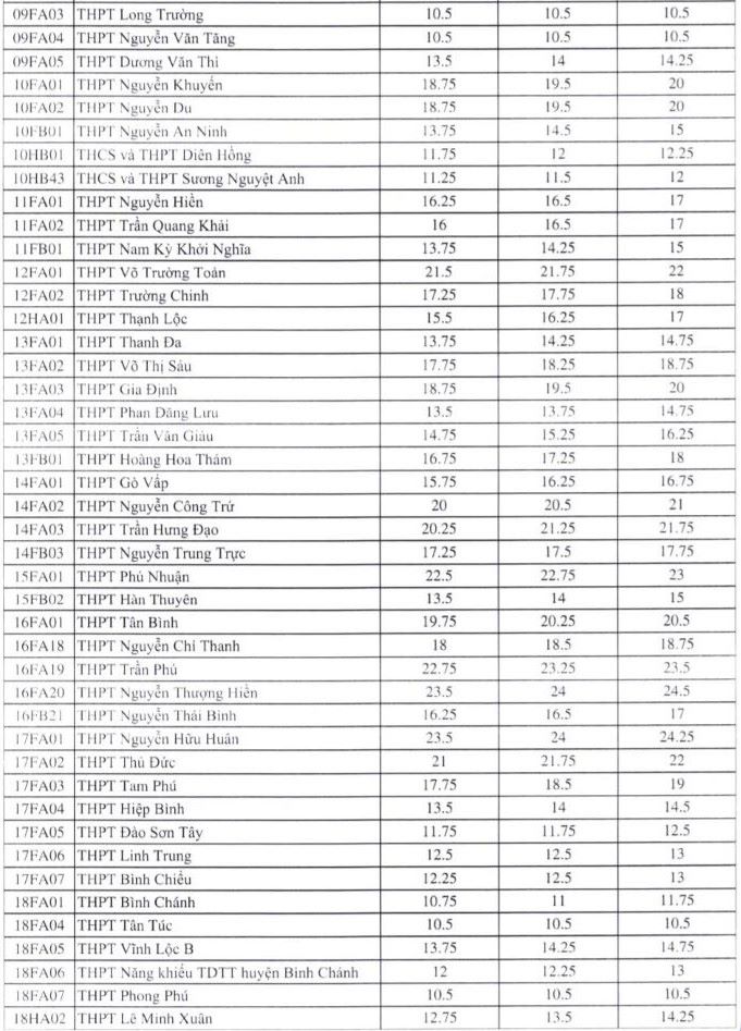 In the opposite direction, many schools have benchmark scores of about 10.5-11 points, which means an average of just over 3.5 points per subject. Thus, the benchmark score range in Ho Chi Minh City is up to about 13-14 points.