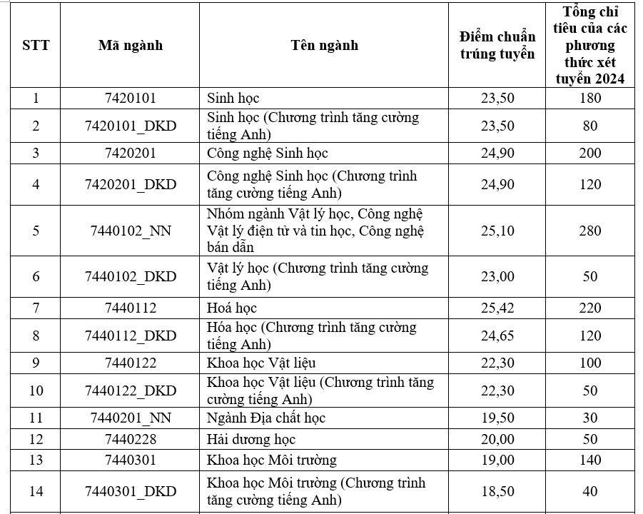 On the afternoon of August 17, the Admissions Council of the University of Natural Sciences , Vietnam National University, Ho Chi Minh City announced the 2024 regular university admission score according to the method of reviewing the results of the High School Graduation Exam.