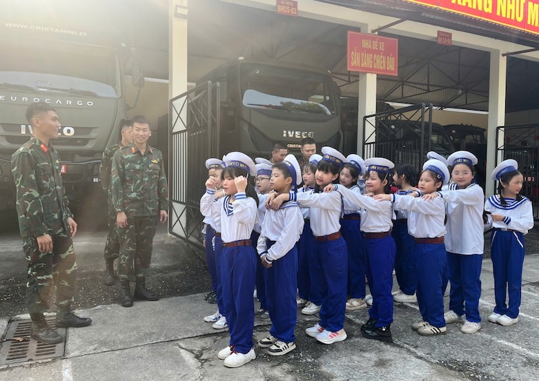 Dinh Thi Quynh Anh - a student of class 4A3 said that through the experience, she was most impressed with the turban-covered learning of the soldiers; introduced to the unit's specialized vehicles.
