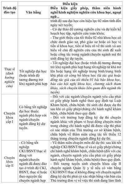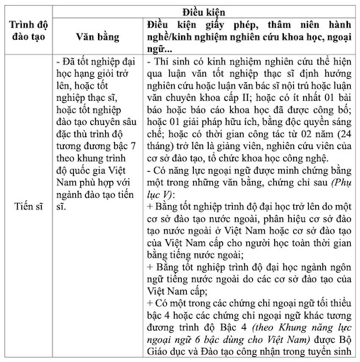 In addition to the general conditions, candidates must also meet the conditions on diplomas, certificates, experience/professional seniority, foreign language proficiency, scientific research for each subject.