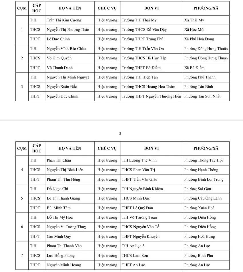 16 management clusters are divided by the Department of Education and Training of Ho Chi Minh City as follows: