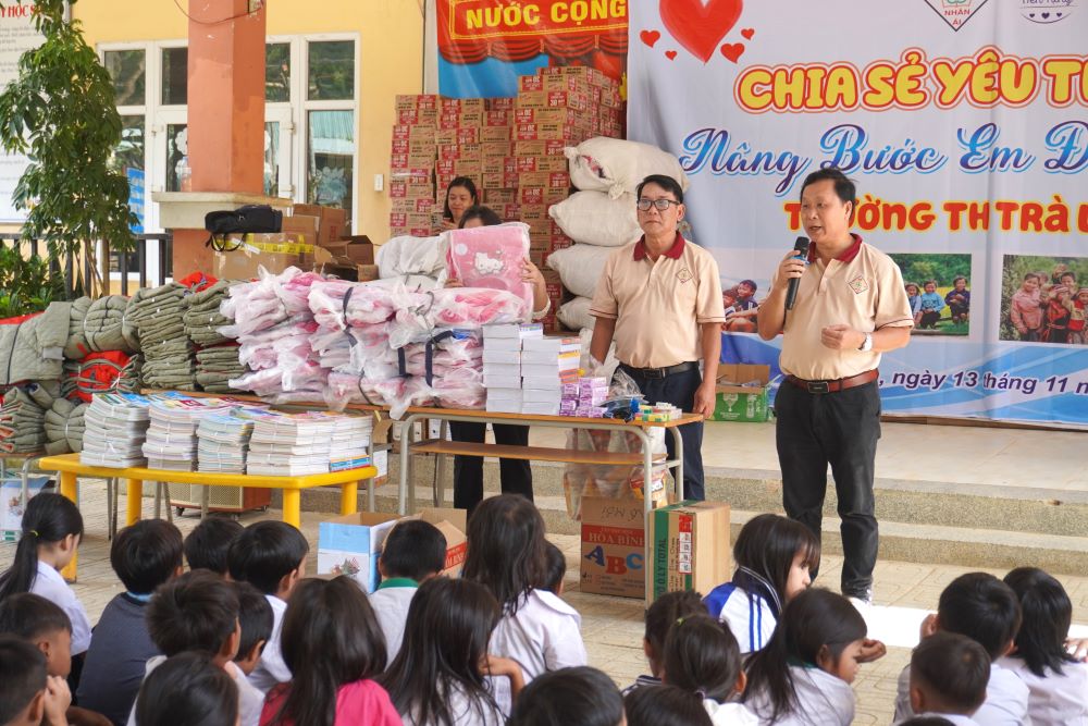 "These gifts not only help children have more learning tools but also bring warmth and spiritual encouragement at the right time. Thanks to that support, we are more confident to continue to care for students and restore the learning rhythm after natural disasters, Mr. Ngoc shared.