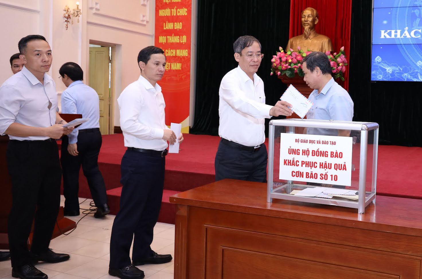 In response to the above heavy damage, and at the same time responding to the call of the Central Committee of the Vietnam Fatherland Front, with responsibility and spirit with the whole country towards the provinces and cities in the Northern region, towards the people, soldiers, teachers, and students affected by storms and floods, the Ministry of Education and Training and the Vietnam Education Trade Union organized "Supporting people to overcome the consequences of storm No. 10".