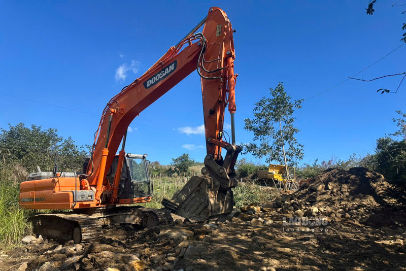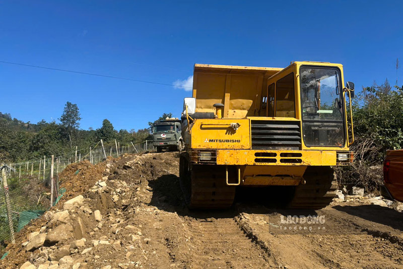 Present in Phin Ho village, where the main school area was built, according to the reporter of Lao Dong Newspaper, many machines and vehicles were mobilized to level the rocks and soil, and carry out site clearance work.