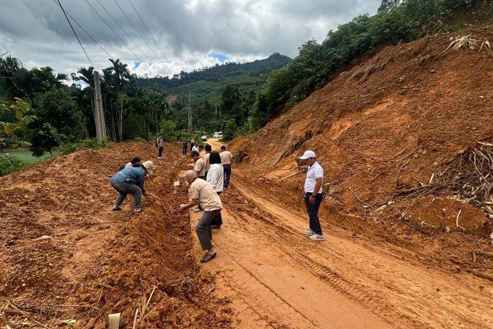 Although landslides are still surrounding and danger is still hanging on the mountainsides, in the midst of that vast rock and soil, the wooden roofs are still strongly planted with red flags with yellow stars. The national flag color is like a silent affirmation: natural disasters can knock down mountains and forests, but cannot shake the will, belief and efforts of the people of Tra Leng and the functional forces who are working day and night to cross the route, restoring a peaceful life to the highlands.