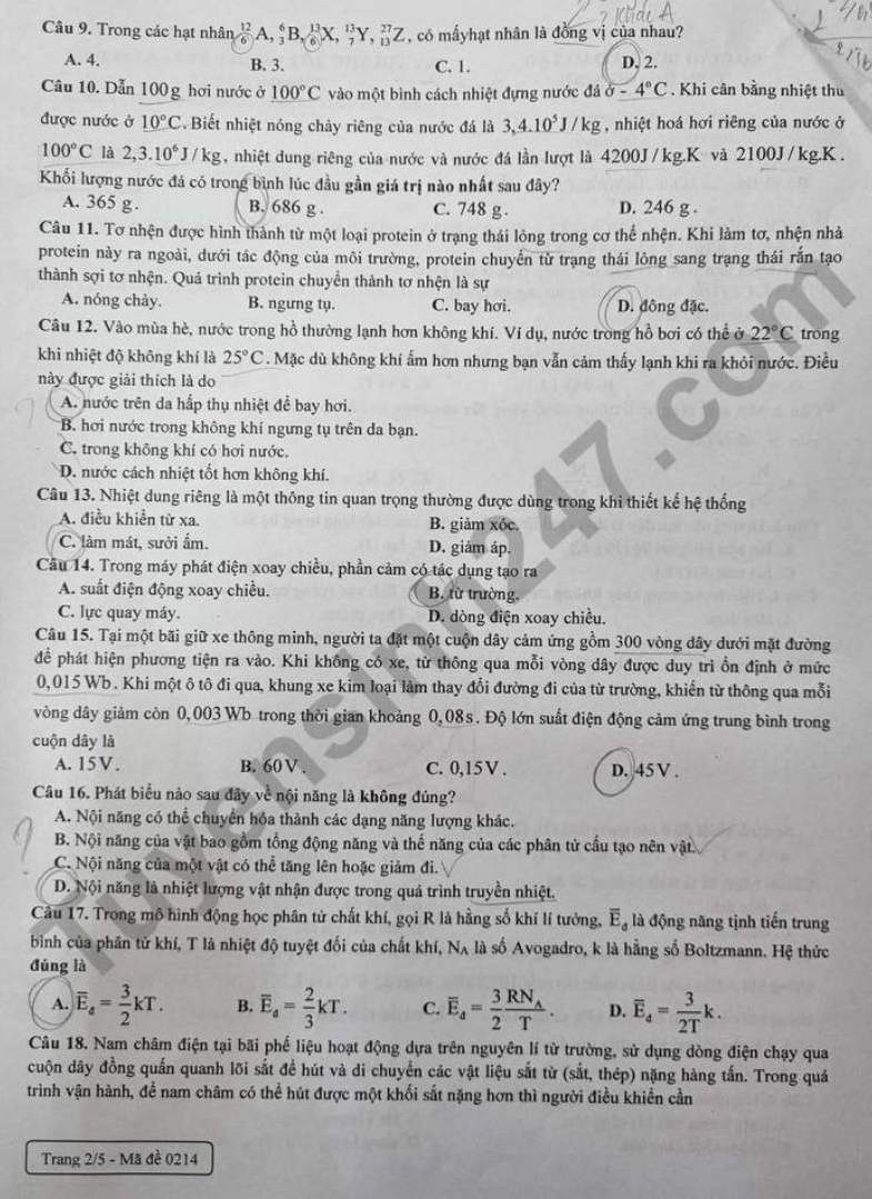 Answers to the 2026 high school graduation mock exam in Physics - Quang Ninh Department of Education and Training (Implemented by: Tuyensinh247 Professional Board)